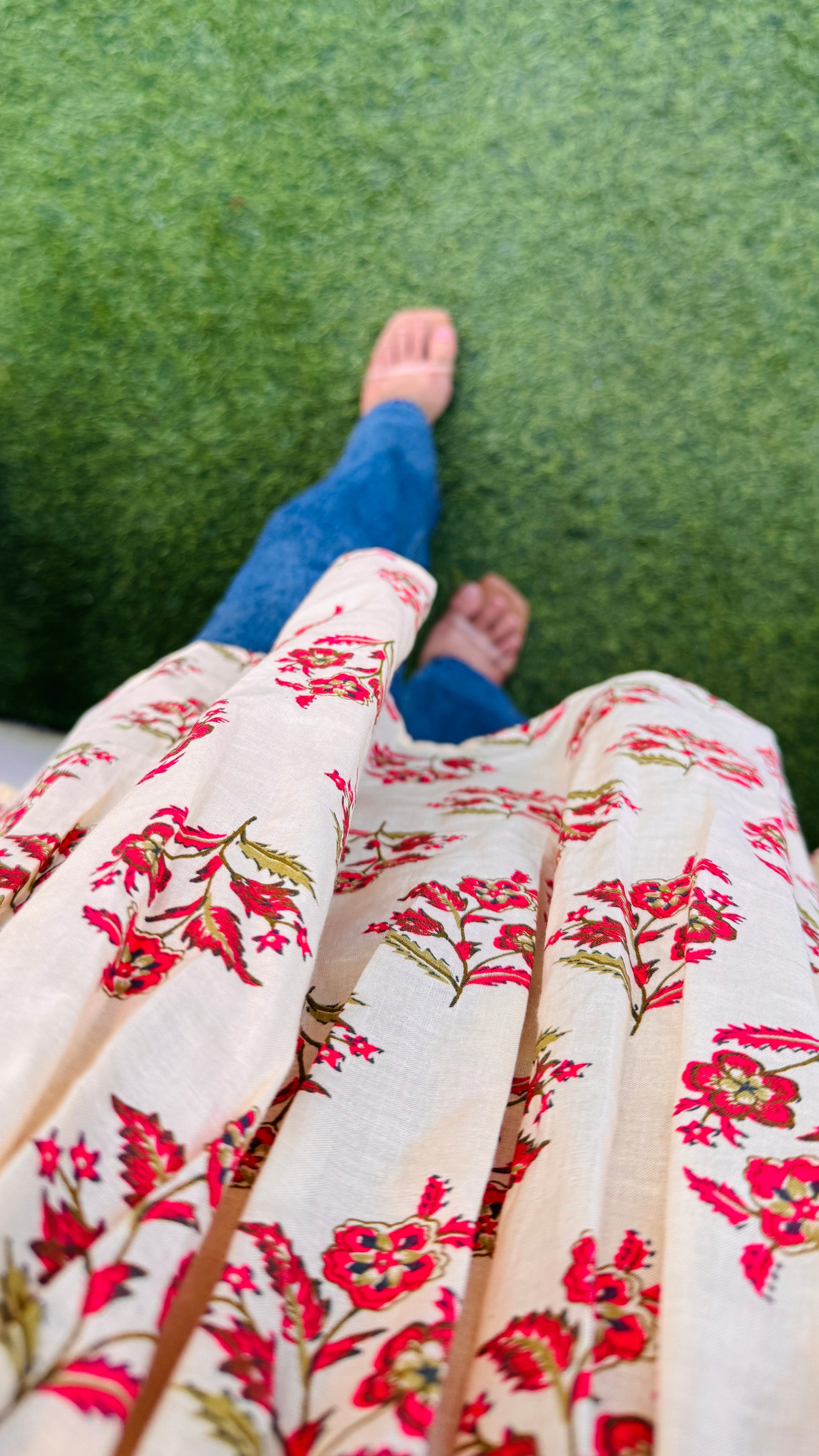 Cotton Cream Flared Printed Aliacut Peplum Top
