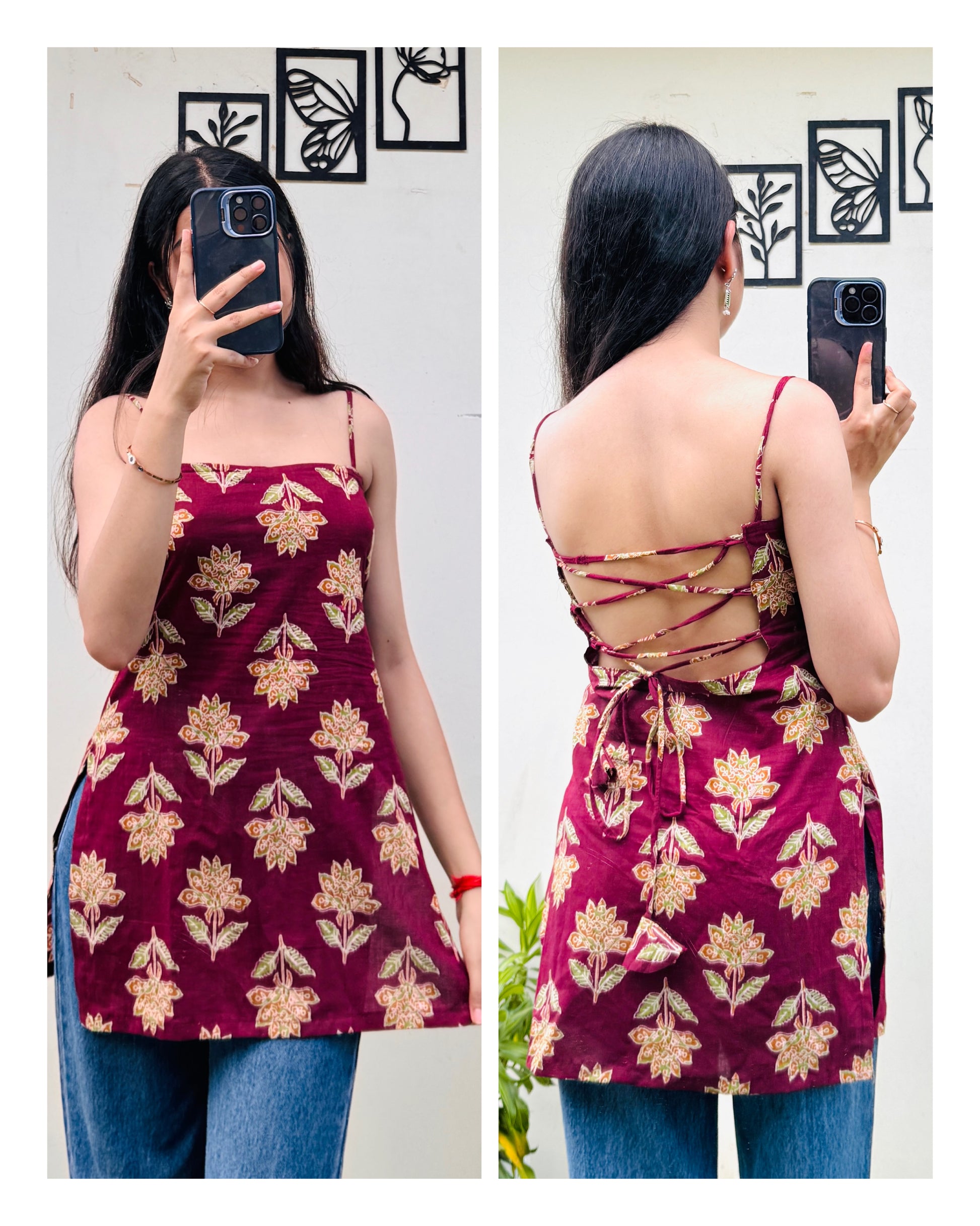 Cotton Maroon Padded Corset Back Short Kurti
