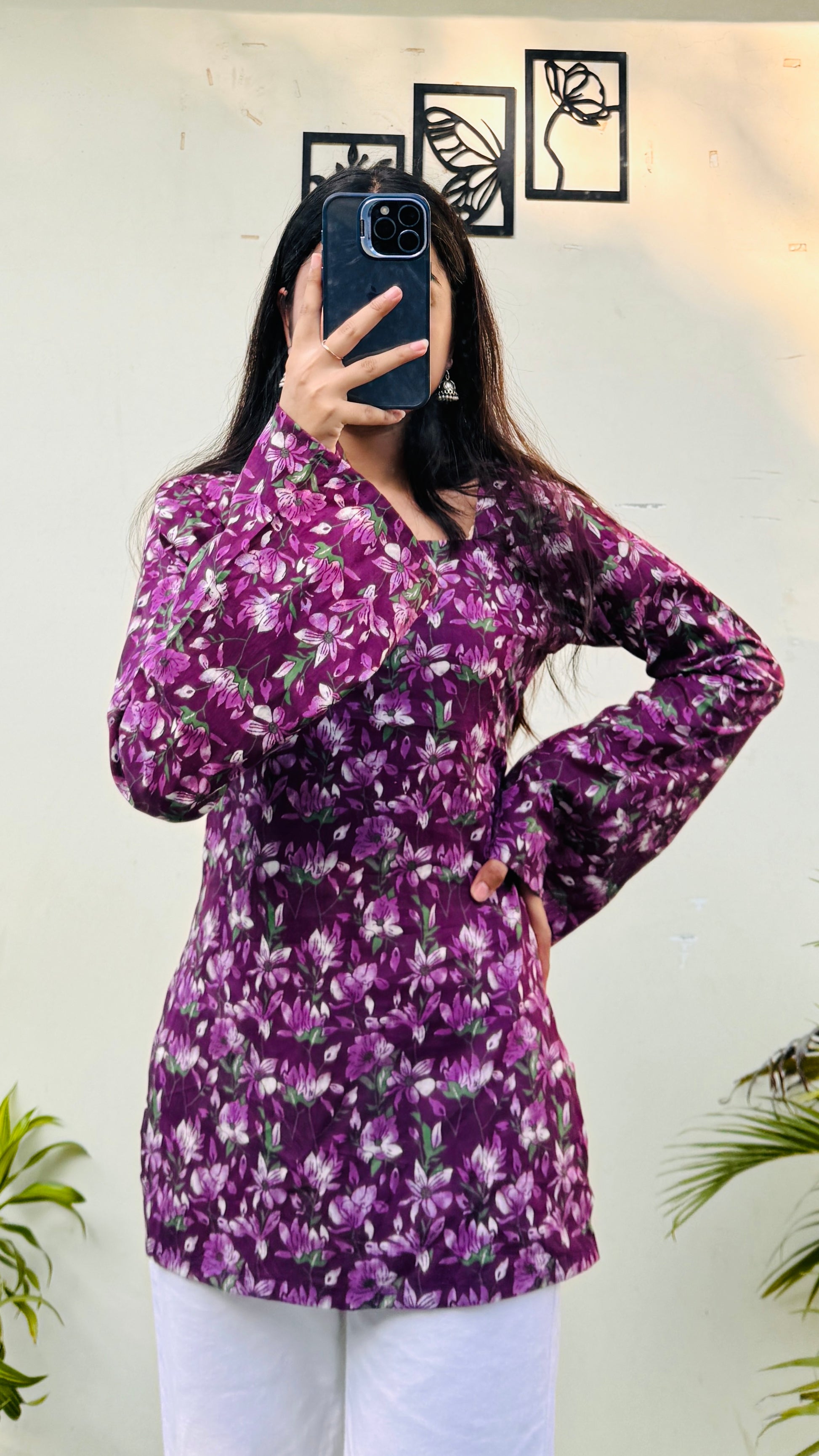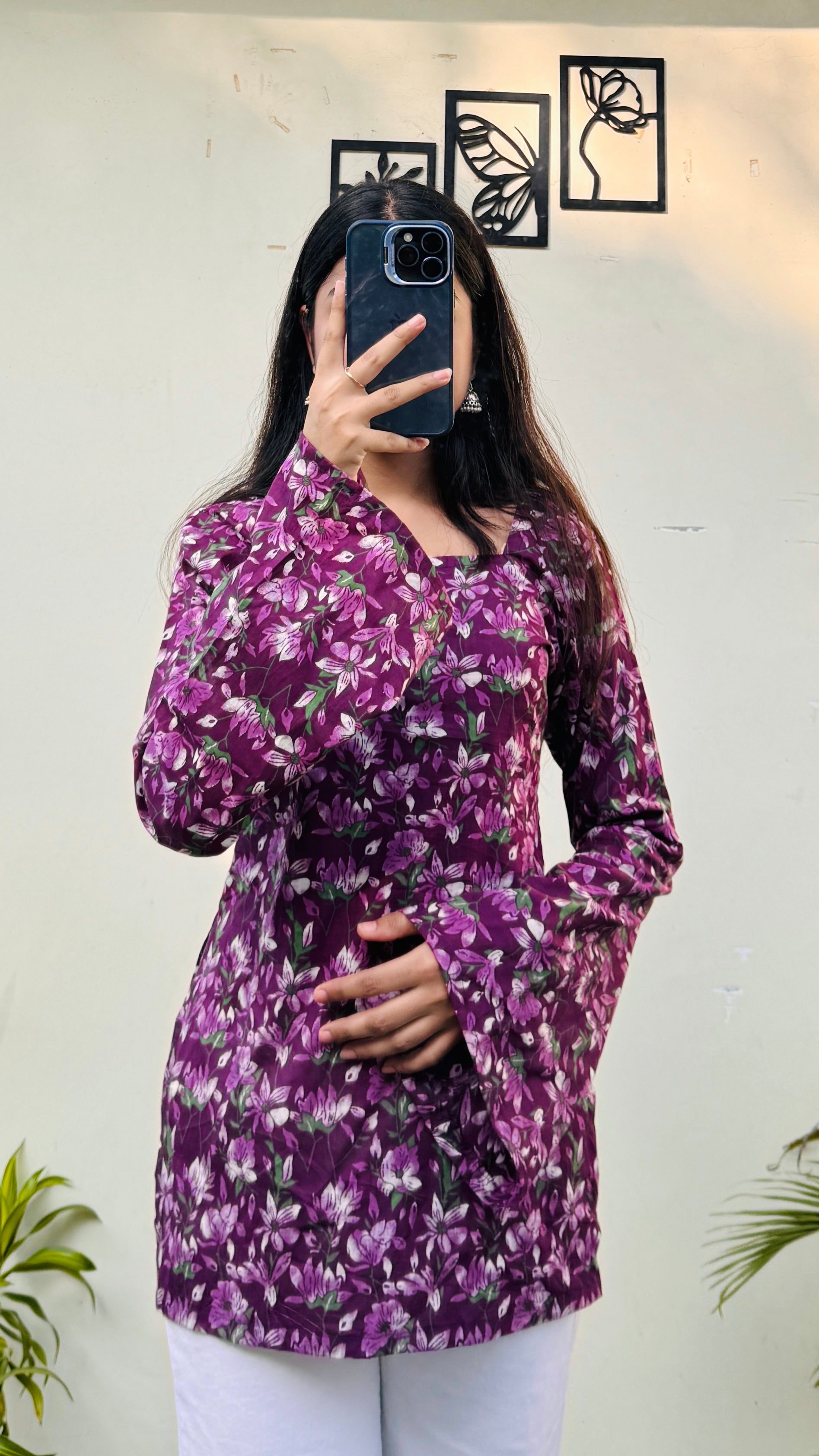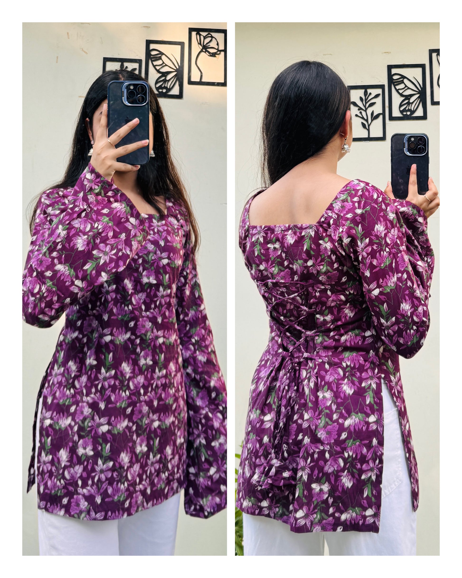 Cotton Wine Square Neck Corset Back Short Kurti